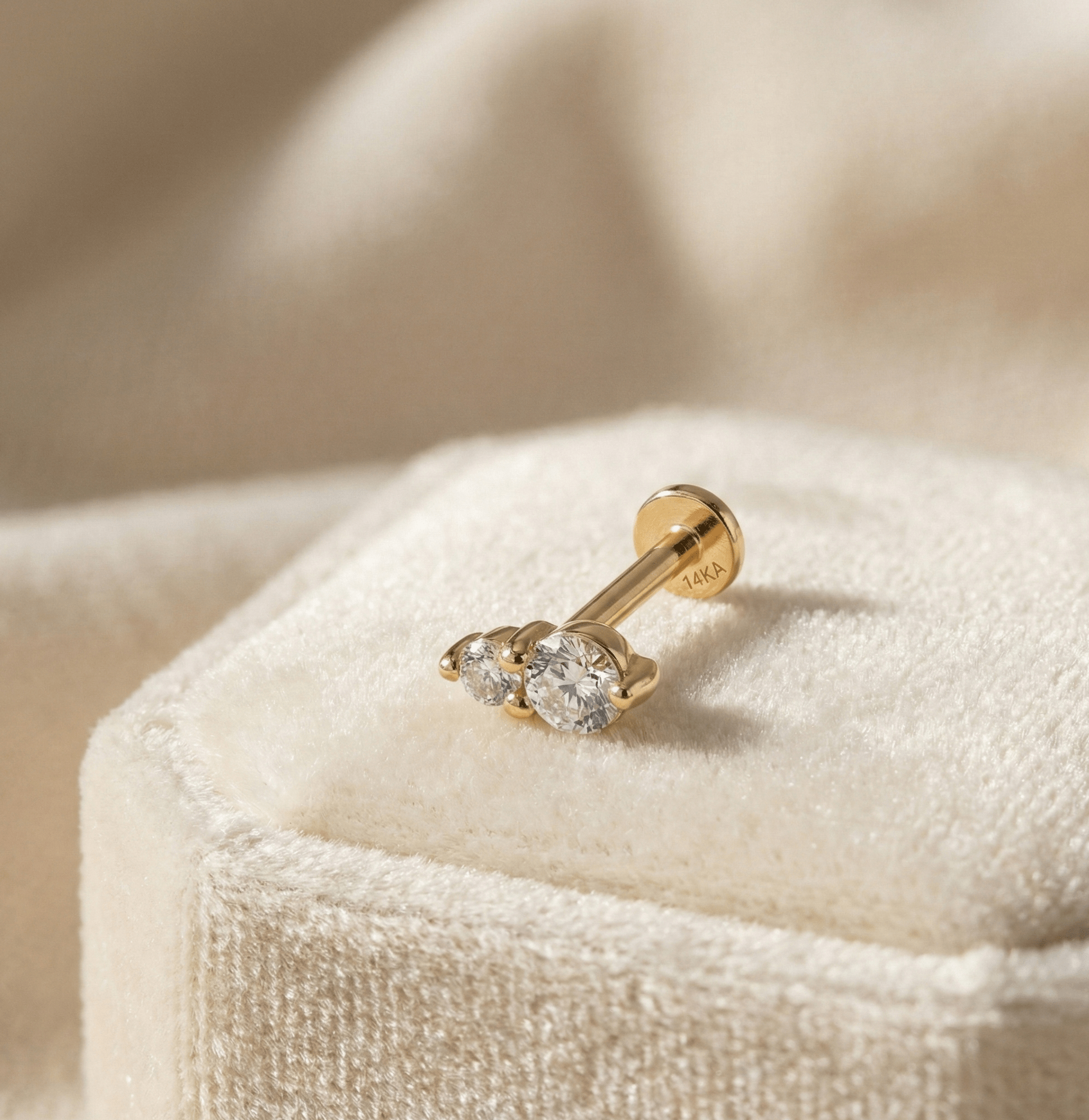 14K Tragusörhänge Dubbel Sten I Äkta Guld Minimal Broskörhänge