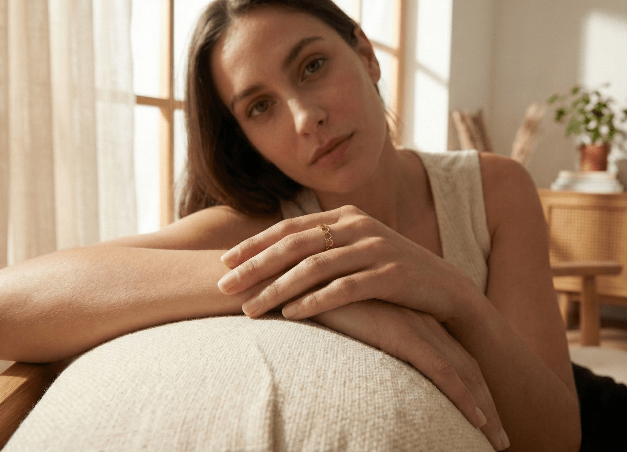 Den smala bandprofilen gör detta till en bekväm tunn guldring som känns både minimalistisk och exklusiv. För dig som söker en unik geometrisk guldring, en stilren minimalistisk guldring eller en modern design ring guld, är detta ett perfekt tillskott till din smyckeskollektion.